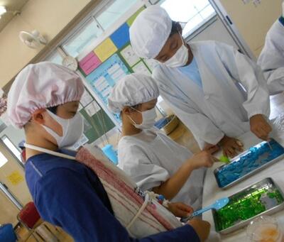 栄養士の先生にデモンストレーションしていただき、班ごとに分かれて調理しました。