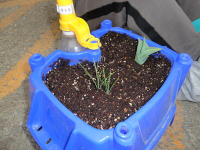 1月ごろ植えたチューリップの芽が出ました。毎朝水を上げているのに芽が出ない・・・と言っている子が何人かいたので、少し掘ってみると土の中で芽が出ている状態でした!地上に出してあげるとぐんぐん伸び、順調に育っています。春が来るのが楽しみです。