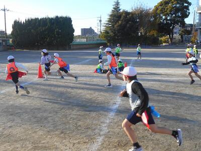 4年生では体育の学習で「タグラグビー」が始まりました。