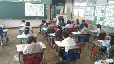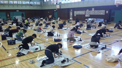 17日(火)に学年全体での書きぞめ練習が行われました。