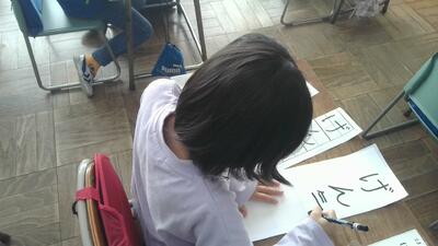 新学期になり、書きぞめ大会が行われました。