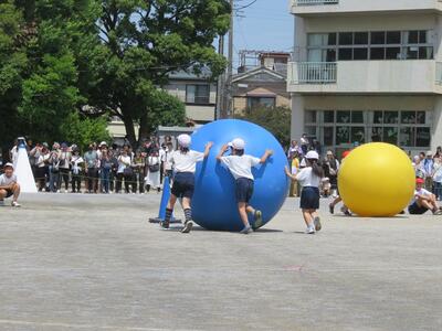3年生の種目は「大玉ころがし」と「らっしょい わっしょい 中居の華」。