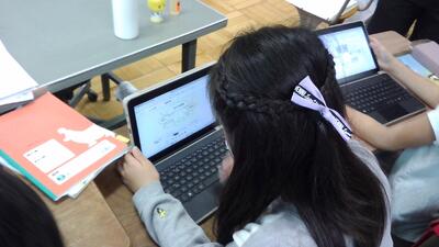 4年国語ICTの活用 投稿: 中居小学校 (16:15) 国語「工芸品のみりょくを伝えよう」では、図鑑に載っている情報をタブレットを活用し整理し、作文にする内容をまとめました。グループで画面を見ながら話し合い、作文にする構成も完璧です! -