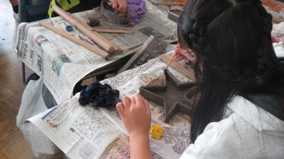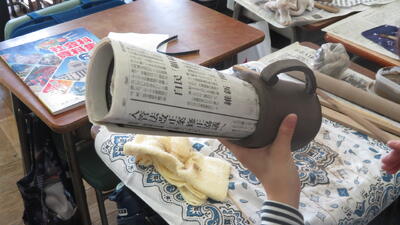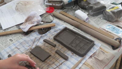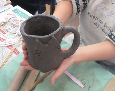 お皿、コップ、置物など各々が考えたものを制作していました。