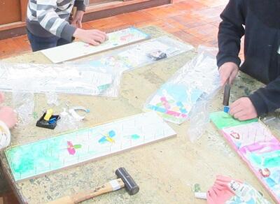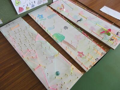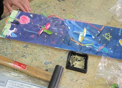 3年生 図工「トントンくぎ打ちコンコンビー玉」 投稿: 中居小学校 (16:31) カテゴリー: 授業の様子 図工の時間に金づちの使い方を学習します。 金づちでリズムよくトントン釘を打ちます。指を打たないように気を付けて…。 カラフルな輪ゴムや風車などのしかけを使って、どんなコースができるかな? ビー玉を転がして遊ぶのが楽しみですね。 -