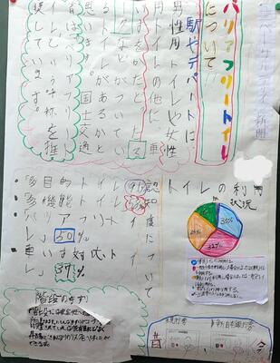 4年生総合「心にもバリアフリー」まとめ新聞 投稿: 中居小学校 (16:34) 4年生では一年間を通してバリアフリーについて学んできました。学んだことを新聞にまとめ、ご指導いただいた福祉施設の方に発表します。絶賛準備中です。 -