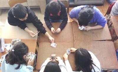 トランプやUNOなどのカードゲームやオセロ、囲碁など様々なゲームの中から自分たちで選び、グループごとに覚えて楽しんでいます。