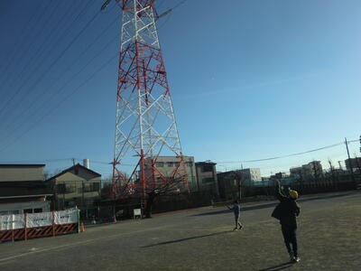 今日は、風が少し強く絶好の凧揚げ日和となりました。子供たちは走ったり、風を待ったりしながら作った凧を空高く上げ、楽しそうに活動できました。