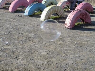 たくさんの大きなシャボン玉が風に乗って遠くまで飛んでいきました。